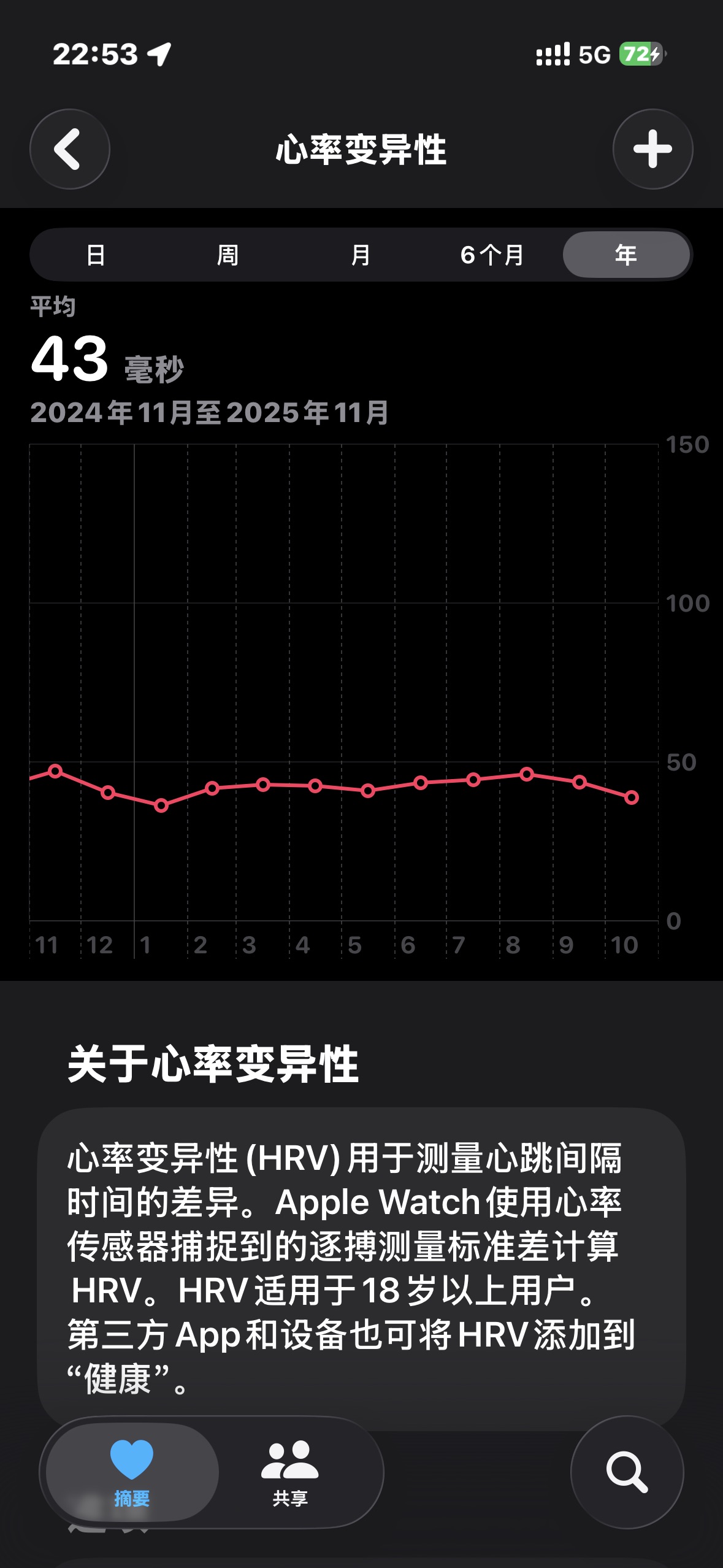 这很直观的体现在了我的HRV趋势上,从科大回到上海后就一路下坡并且斜率逐渐变大