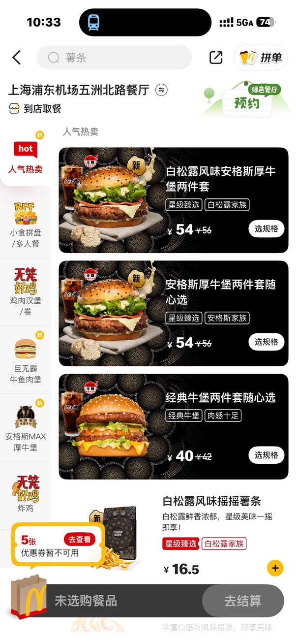 不过板烧鸡腿居然和松露安格斯一个价