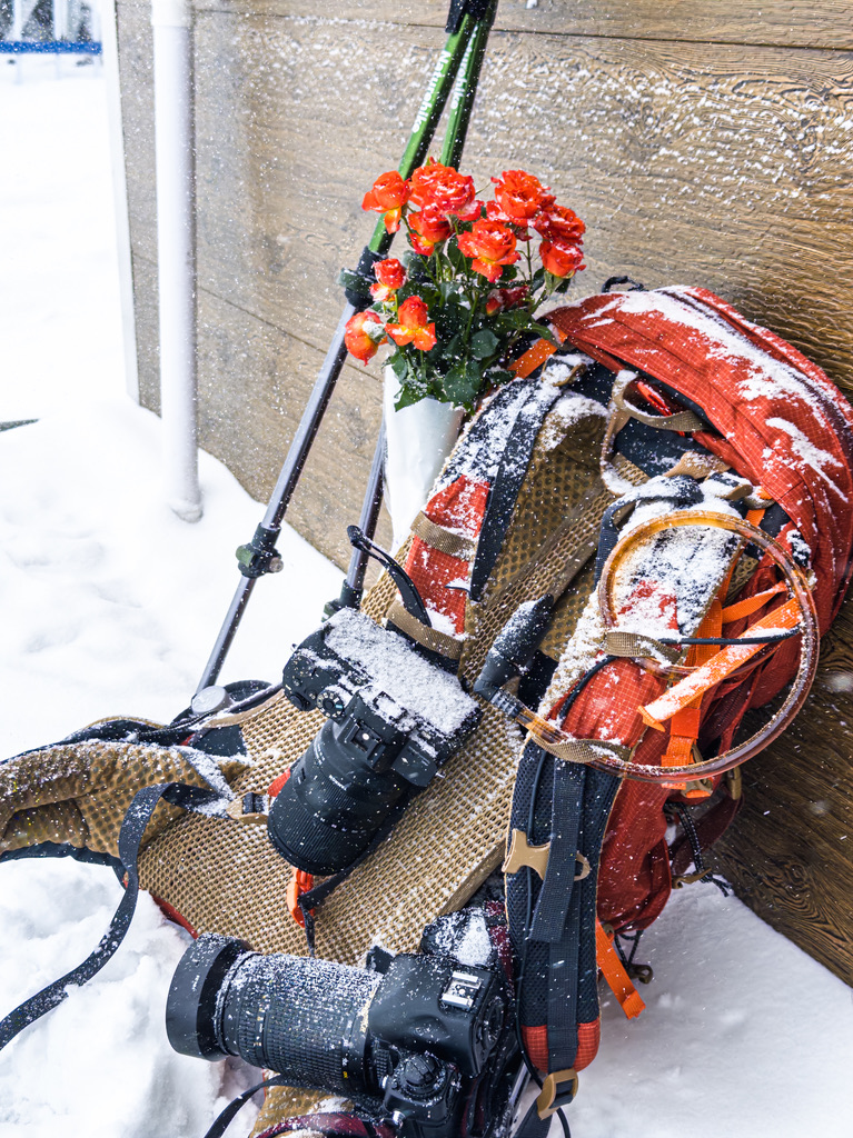 空间和负重都留给了摄影器材,包括3颗镜头,两台相机