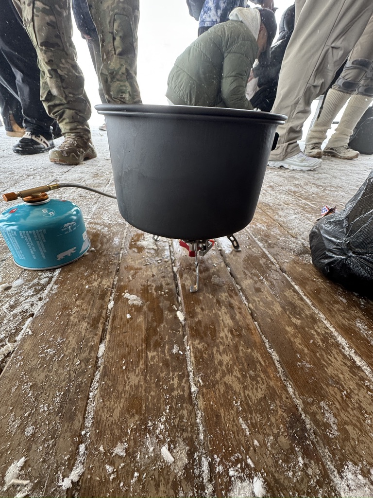 在补给站遇见了另一个重装登山的人,借了我他的备用羽绒内胆和帽子