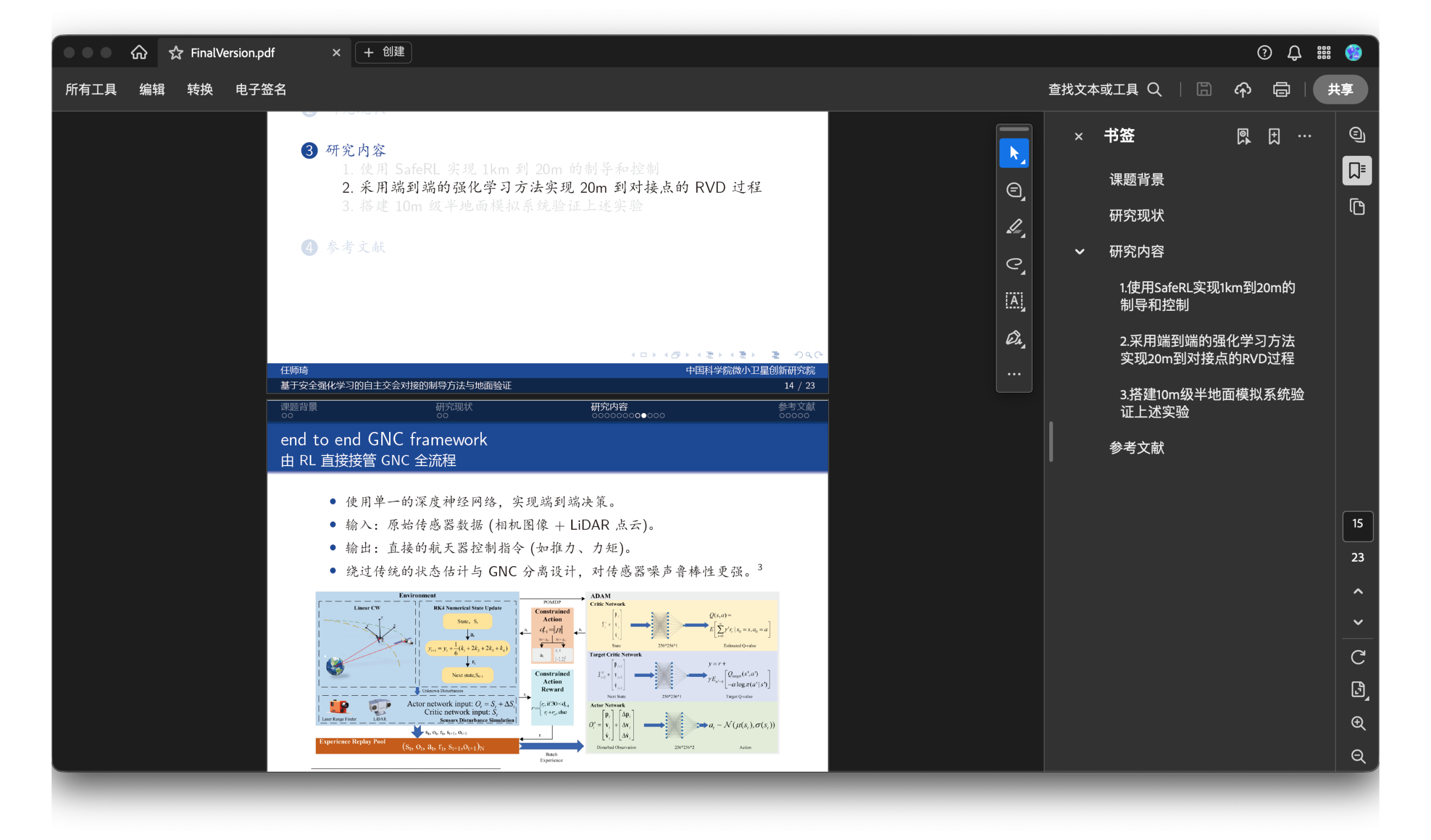 核心内容是把强化学习的方法应用于航天器的交会对接,分为两部分