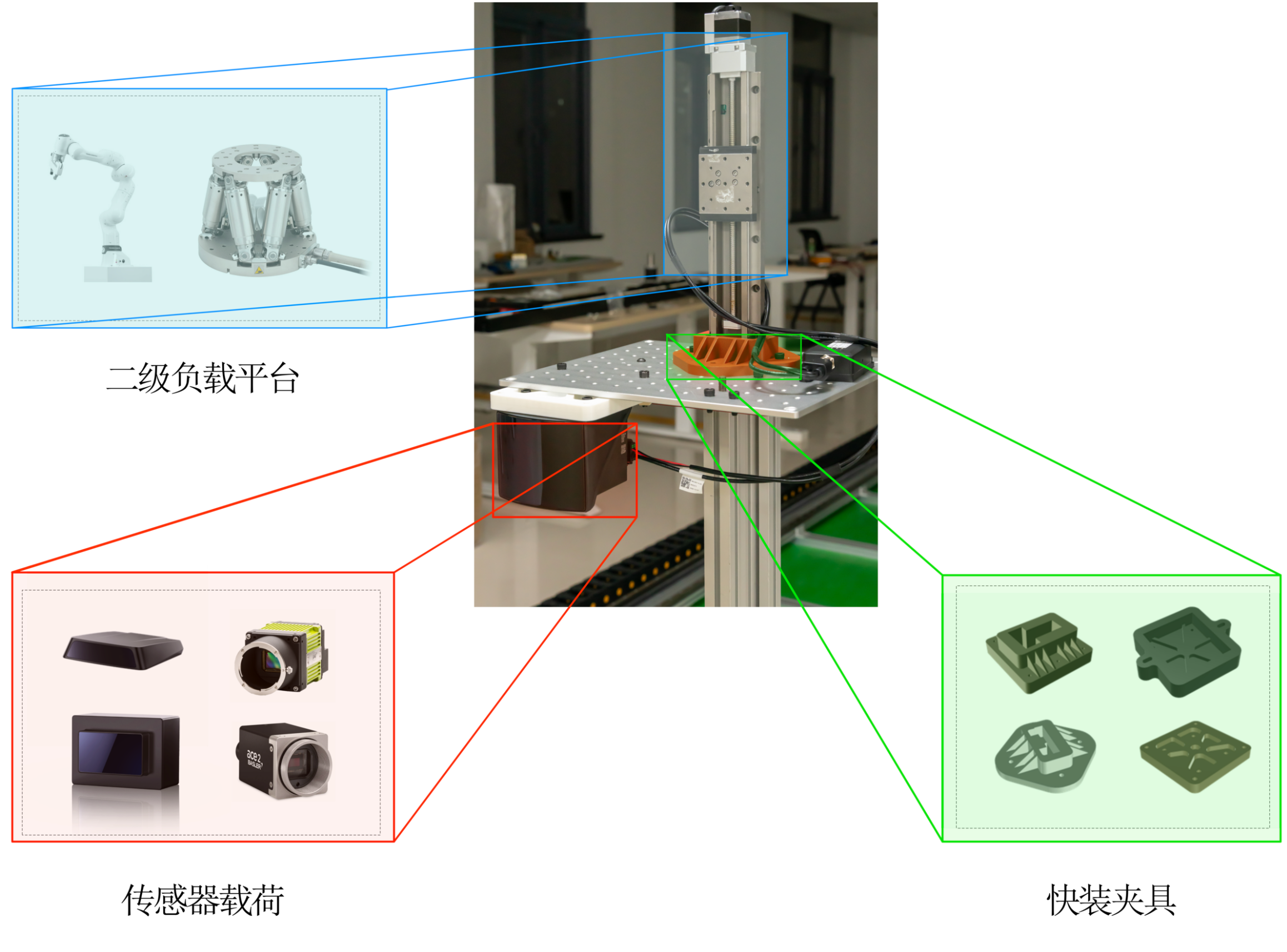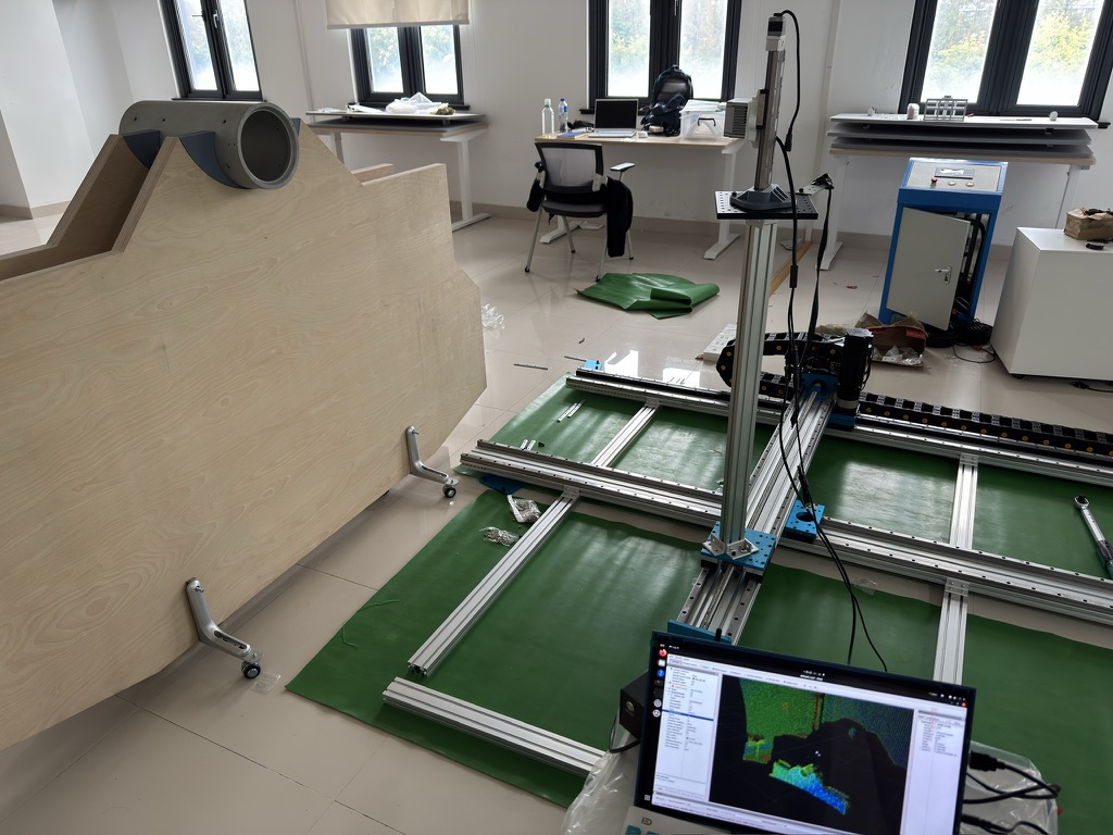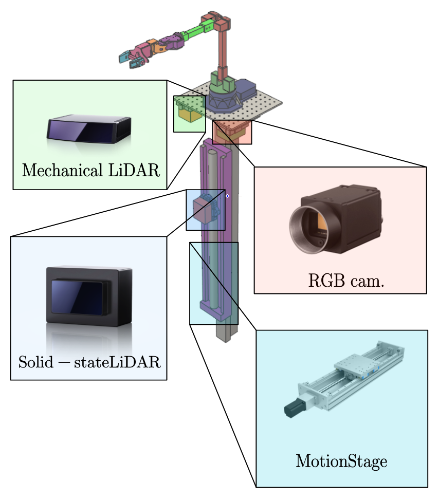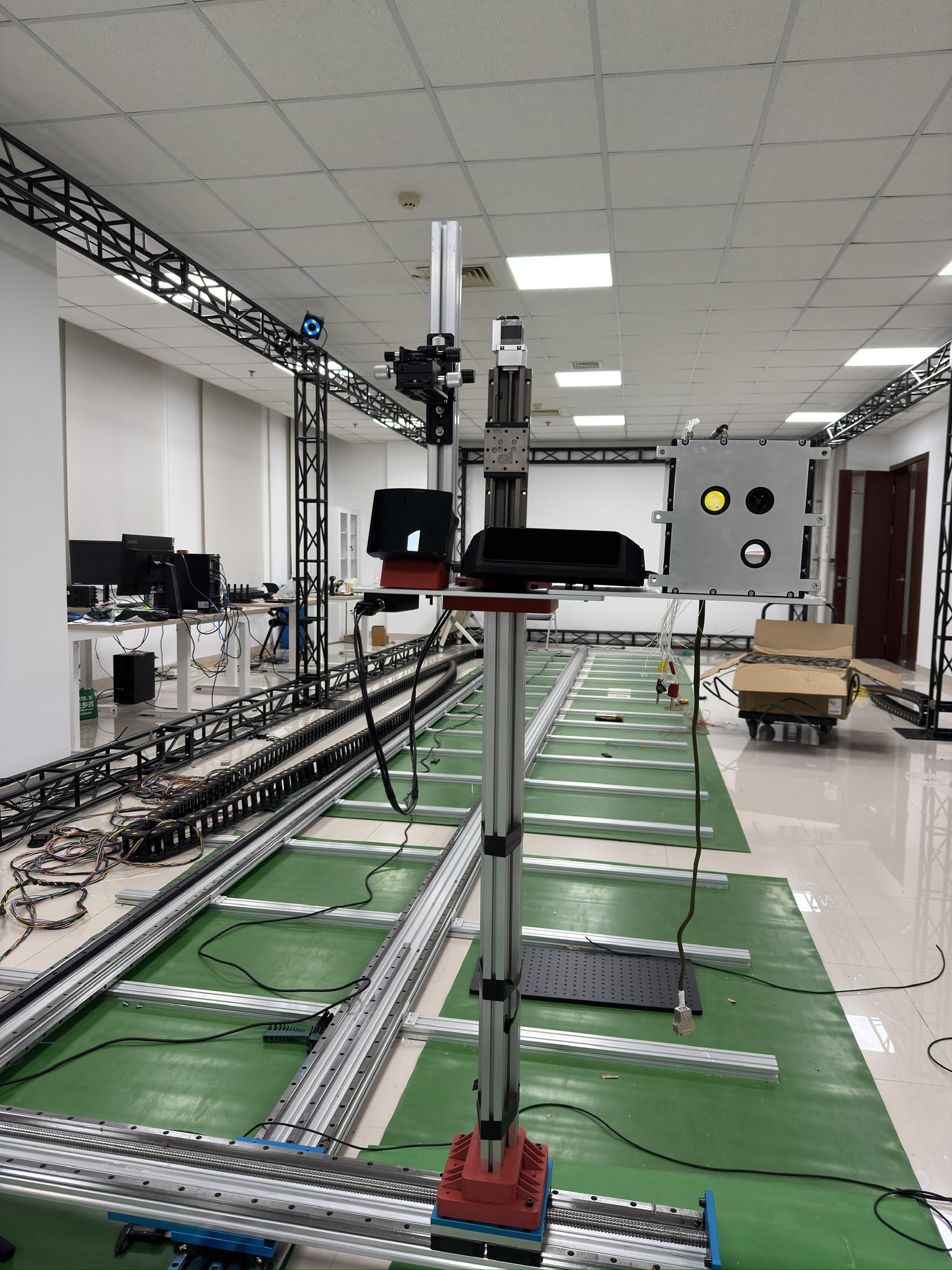买了好多敏感器,光是激光雷达就有3个,他们拥有不同的视场角和分辨率,最终都会被部署在这个轨道系统上